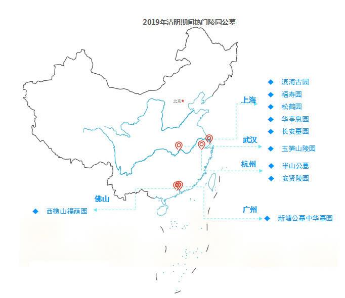 热门祭扫陵园公墓主要有:上海市滨海古园、福寿园、松鹤园、华亭息园、长安墓园,杭州市半山公墓、安贤陵园,武汉市玉笋山陵园,广州市新塘公墓中华墓园,佛山市西樵山福荫园等。