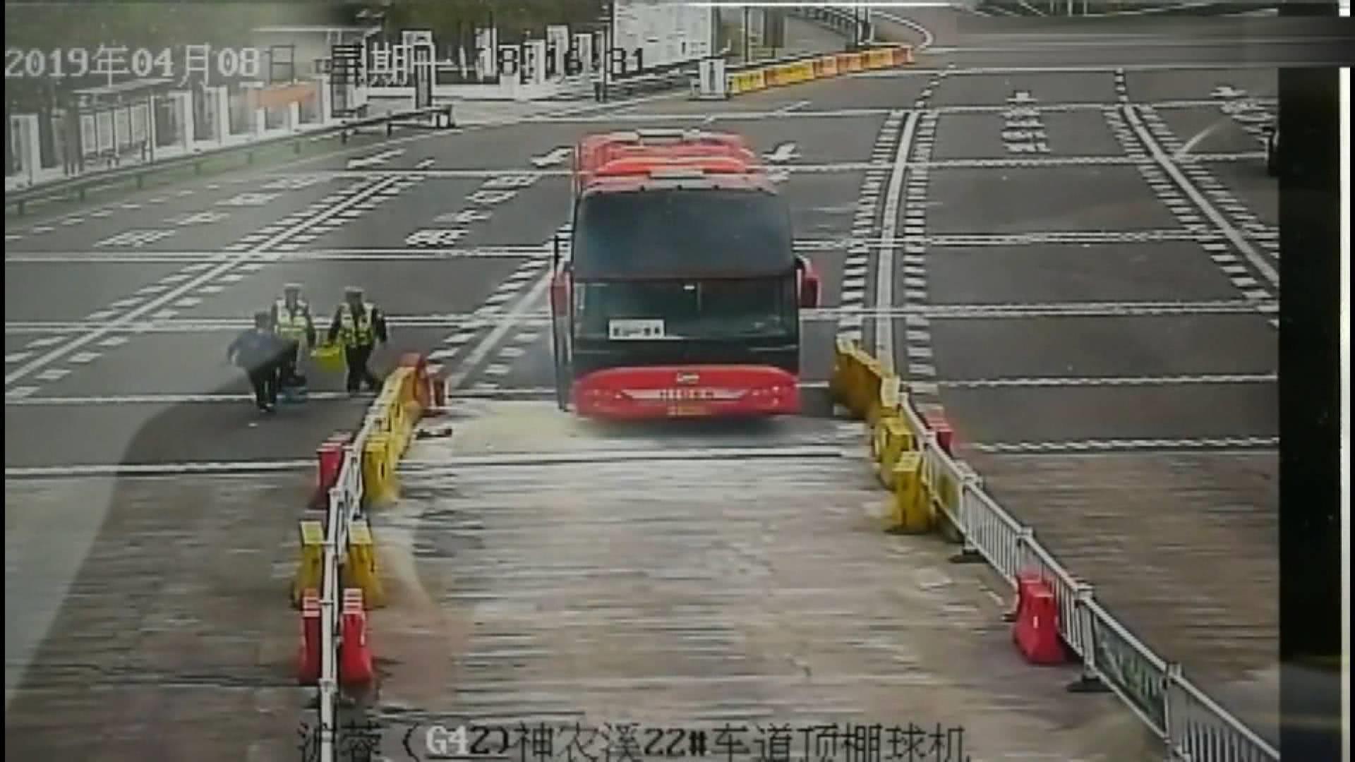 在高速上行驶的客车着火了怎么办?前几天,在沪蓉高速公路巴东段,一客车车轮突然着火,驶向神农溪省际收费站。正在执勤的民警第一时间赶赴现场转移司乘人员。