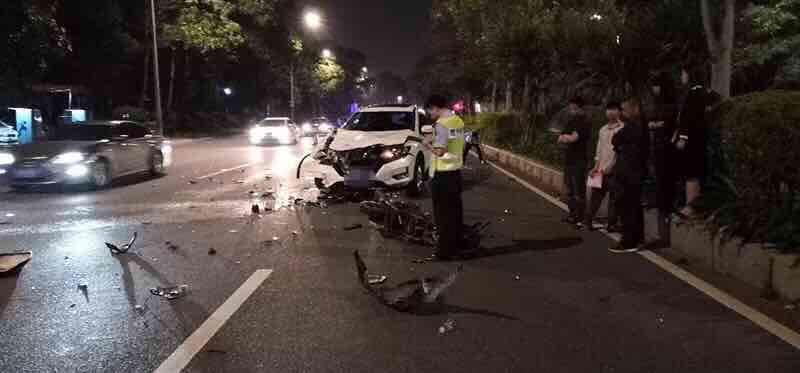 一辆载有3人的摩托车逆行撞向正常行驶的小车。两车相撞产生的巨大惯性直接将摩托车上的3名男子抛向了空中四五米高,并在空中翻滚后重重摔落地面。摩托车也当场散了架。这是4月7日晚,发生在厚街湖景大道加州阳光路段的惊险一幕。