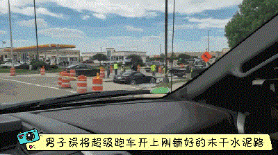 令这位司机感到好笑的是,可以看到建筑工人努力的尝试从混凝土中挖出这辆豪华超级跑车,但收效甚微。