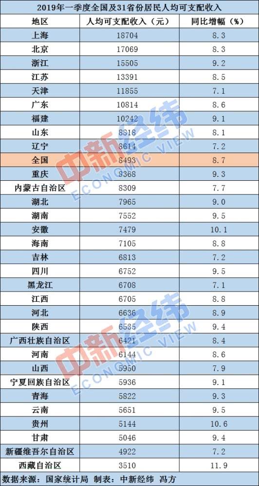 一季度居民收入榜:9省份跑赢全国,上海18704元居首