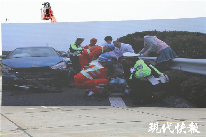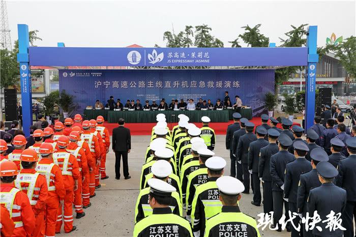 现代快报记者了解到,24日上午,在沪蓉高速镇江仙人山服务区,江苏省公安厅、省交通运输厅和江苏交通控股有限公司联合开展高速公路直升机应急救援演练,演练模拟了以下突发事件:沪蓉高速公路宁镇段沪宁线K236+330发生单车碰撞护栏事故,占1、2车道,车内有1名人员重伤。因事故现场路段车辆积压拥堵,导致地面医疗救援车辆通行困难,且伤员病情危重,宁镇段指挥中心接报后,上报宁沪公司指挥中心,经江苏省高速公路调度指挥中心(一路三方联合值班室)许可,启动直升机救援专项应急预案,由上海金汇通航股份有限公司派出一架直升机飞至现场开展救援,有效缩短了事故发生后的黄金救援时间、缩短了事故现场处置时间。