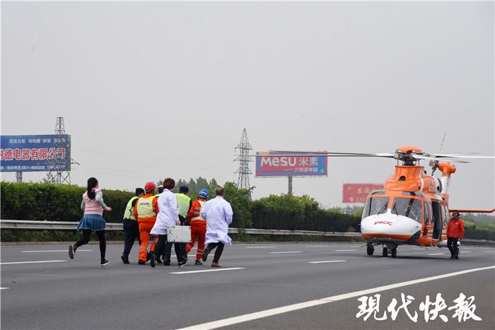 4月24日上午,一架直升飞机飞到了沪蓉高速镇江段,搭载一名“伤者”后,又飞离高速公路……这是一场立体救援演练,演练模拟了高速公路发生突发事故后,直升机应急救援的情况。