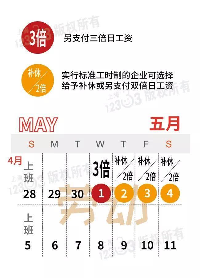 上海市人力资源和社会保障局官方微信近日介绍,5月1日加班,需另支付3倍日工资。5月2日、3日、4日加班,实行标准工时制的企业可选择给予补休或另支付两倍日工资。