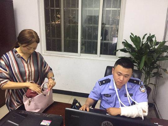 5月4日,高速公路迎来返程高峰,而四川高速交警三支队九大队威远警组民警张映辉仍按时坚守在执勤岗位上,吊着自己已经骨折左手。张映辉的左手桡骨刚于五一节前几天骨折!