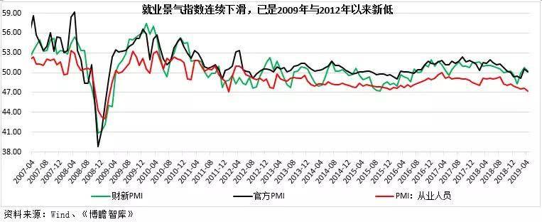 上图是从2007年4月-2019年4月的PMI指数走势图。