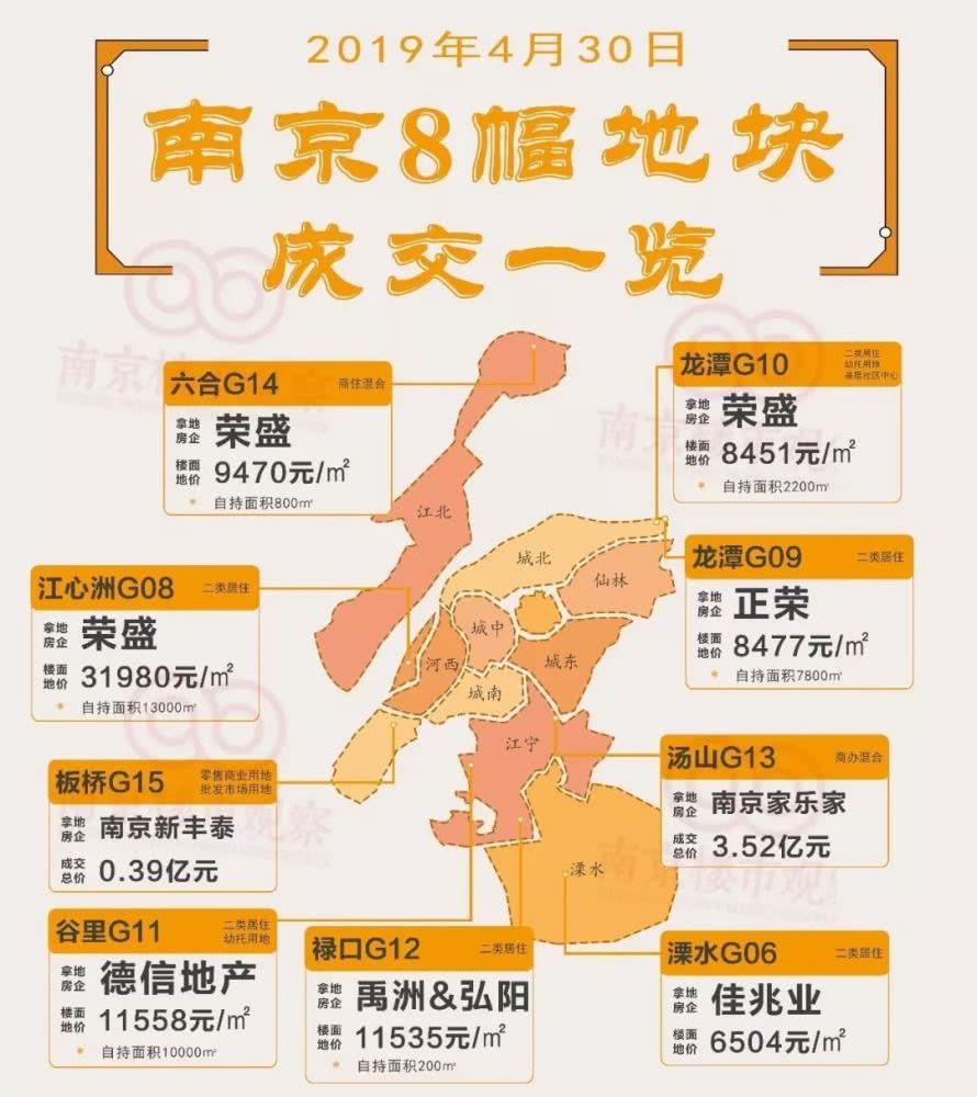 2、4月的最后一天,南京一口气拍出9幅经营性用地,其中6幅地块都拍至最高限价,总自持面积达34000㎡!