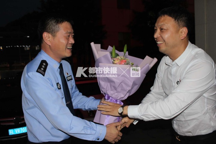 台州市公安局椒江分局领导为凯旋民警送上胜利的鲜花 公安 图