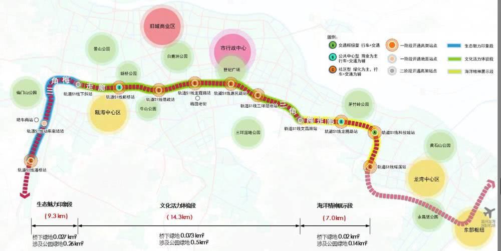 “一廊”指S1线“三角梅走廊”风景线,总体长度约30.6公里,可建成具有1.02平方公里规模的全市首条最美轨道风景线,打造温州最美、最具活力的线下公园。