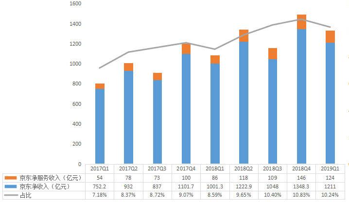 与此同时,这也是京东自去年三季度首次净服务收入占比迈入10%大关后,连续第三个季度保持该占比。