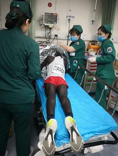 中山交警送医救治 9 时 40 分左右,在江东路珠翠街执勤的中山大队民警徐志元接到指令,称鲁迅路春海街海事法院正门有一外国运动员受伤,急需送医院紧急救治,徐志元立即赶到现场,把伤者送到最近的三八广场友谊医院,经过医护人员的紧急治疗,伤者最后恢复正常。经了解,伤者是肯尼亚籍参赛运动员。治疗后,徐志元又联系组委会,把伤者安全送到肯尼亚团队。