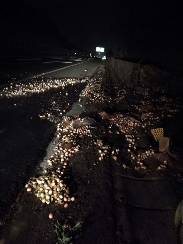 车上的鸡蛋被搬下来几箱后,车上本来只是冒烟的纸箱、鸡蛋托盘突然腾得冒出火苗。在曹警官和3名男子共同努力下,起火的鸡蛋都被扔下了车,蛋液撒了一地,高速公路上摊起了巨型荷包蛋。随后到达的消防将火迅速扑灭。