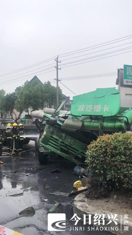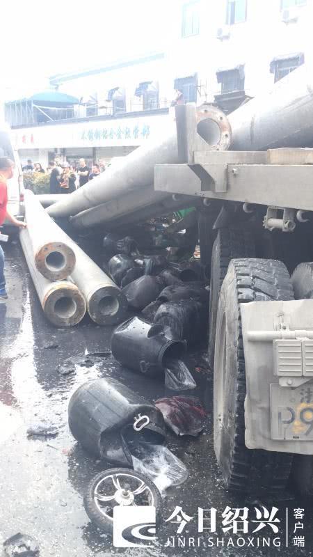 根据现有情况初步判断,事故疑为运输电线杆的重卡,为避让电瓶车不慎与商务车发生相撞。具体情况还有待柯桥交警的调查核实。