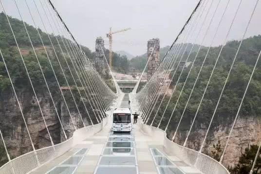 2019年4月24日,无人驾驶巴士驶上张家界“世界第一玻璃桥”