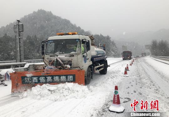 图为养护应急人员使用专业除雪车进行除雪作业。(江西省高速集团 供图)