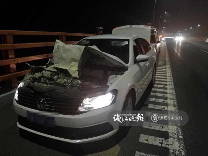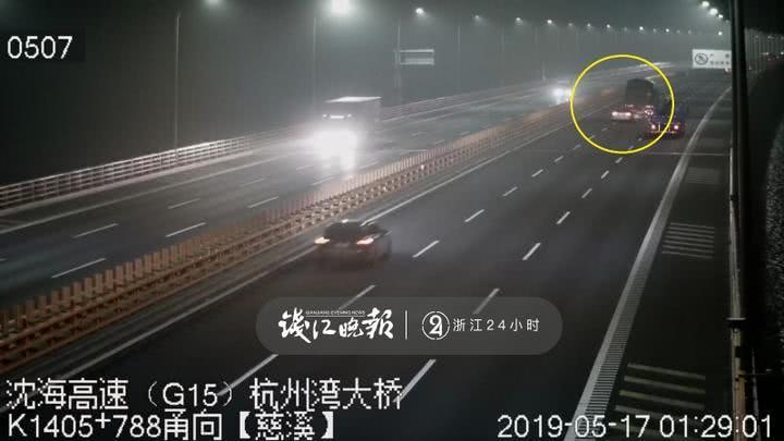 昨天(5月17日)凌晨1点31分,高速交警宁波支队五大队接到报警:杭州湾跨海大桥往宁波方向1405公里处,一辆白色大众轿车追尾一辆大货车,随后发生自燃!