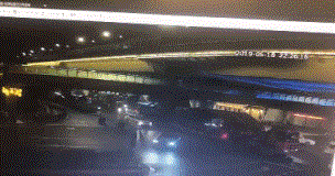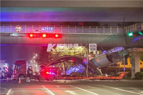 前天晚上,当庆春路秋涛北路口人行天桥一部分桥体坍塌时,一辆曹操专车死里逃生,突然加速,从正在倒下的桥体下方钻出并右转,没有被碾轧到。