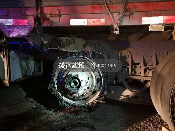 货车司机是来自陕西渭南的周师傅。他告诉民警,自己从杭州拉了一车货送往陕西,车子在应该是在杭长高速转沪渝高速的匝道里爆胎的。“当时我感觉车身有点倾斜,知道爆胎了,但想想还是能继续开,就没有靠边停车,也没打电话报警施救……”