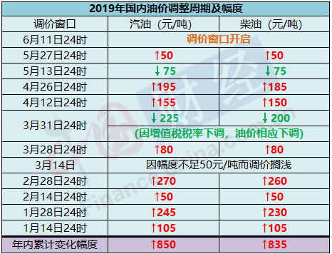 按照现行机制,国内汽、柴油价格根据国际市场原油价格变化每10个工作日调整一次。调价生效时间为调价发布日24时。当调价幅度低于每吨50元时,不作调整,纳入下次调价时累加或冲抵。