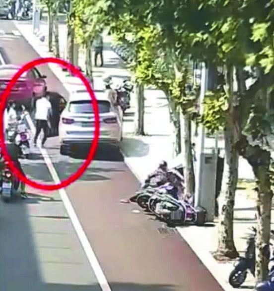 在连撞了两人后,SUV仍然没有停下的意思,反而朝人行道一侧溜去。就在这关键时刻,一名骑电动车载着一位女士的男子紧急在SUV旁停了车,只见他一个跨步冲到了SUV驾驶室一侧,然后一把拉开车门,迅速钻进车内,将车子的手刹拉起。整个过程,男子只用了短短3秒钟时间。