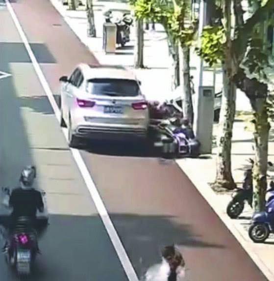 而这还没完,在撞倒男子后,SUV继续向前冲去,又将1米开外一名骑着电动车,背对着它的女子撞倒,并从她双腿上辗过!
