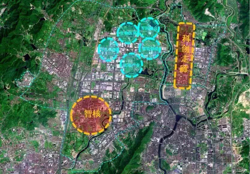 G60高速科创走廊:利用G60、十店线和将新建的G235,在现有基础上继续向北拓展建设次坞片区;利用杭二绕应店街互通,新建应店街片区。重点发展新材料、通信电子、生命健康、运动休闲等产业。