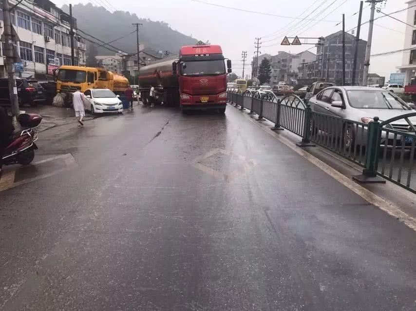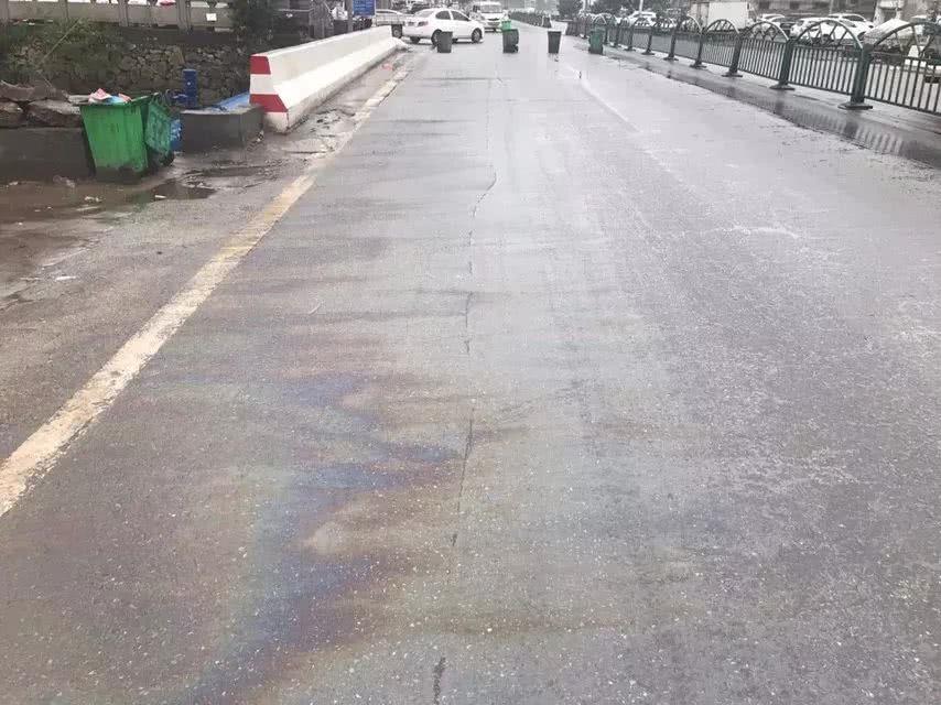 接警后,永嘉交警瓯北中队值班民警第一时间赶赴现场,看到一辆油罐车斜停在路上,罐体右侧被撞出一道40厘米长的口子,半幅公路洒满油污,受污染路段有100多米,交警立即联系公路养护部门前来清污,同时摆放交通提示牌和锥筒,拉开警戒线,将受污染路段隔离,指挥过往车辆在未污染路段按序缓慢通行。在多方共同努力下,路面上泄漏的油污被清理完毕,路面通行恢复正常。