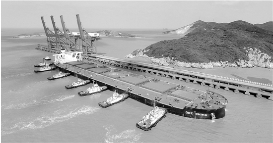 记者了解到,全球运输矿石的轮船最大吨位为40万吨,我国能够停泊这一类型轮船的码头仅7个,其中舟山鼠浪湖码头就有2个。