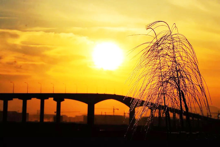 7月12日消息:舥艚大桥跨过舥艚中心渔港,从龙港世纪大道一直通往炎亭镇崇家岙村,是崇家岙集装箱港口码头的主要交通桥梁。图为舥艚大桥日落美图。