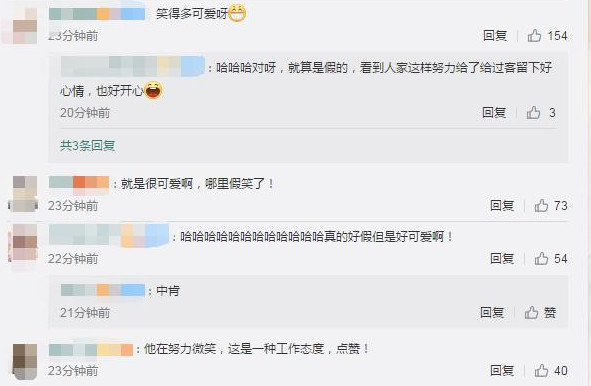 看到这位男收费员的“职业假笑”,有很多网友纷纷议论,男收费员看起来特别憨厚可爱,而且还说到这一个职业有可能很快就消失,根据收费站的领导说到,他已经很努力的在笑了,但是有网友觉得这样的职业假笑还不如不笑,不一定要勉强别人,正常一点多好,男收费员本人并不会接受采访,他说到已经对生活造成了一定的影响,把自己的视频发到网上已经侵犯了他的肖像权,这一段视频的走红让他心里压力特别大,而且他也是觉得每一天面对那么多的车主,想要以微笑示人,没有想到会被拍下来,受到别人的议论。