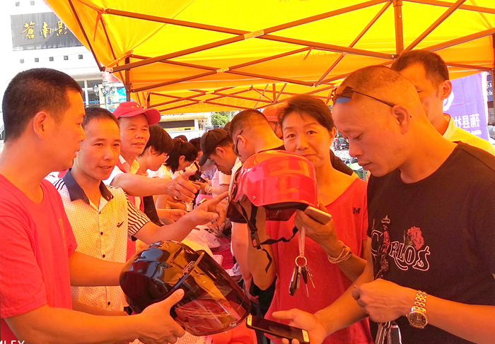 活动向群众宣传电动车的有关法律法规,讲解使用电动车的安全消防知识和注意事项,分发有关宣传资料,并免费发放安全头盔1500多个,提醒广大群众驾驶电动车要自觉遵守道路交通法规,认清加装雨蓬等糸列违规行为的危害性,说明佩戴安全头盔的必要性。