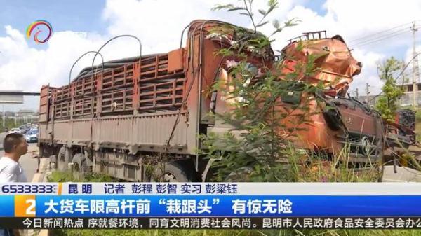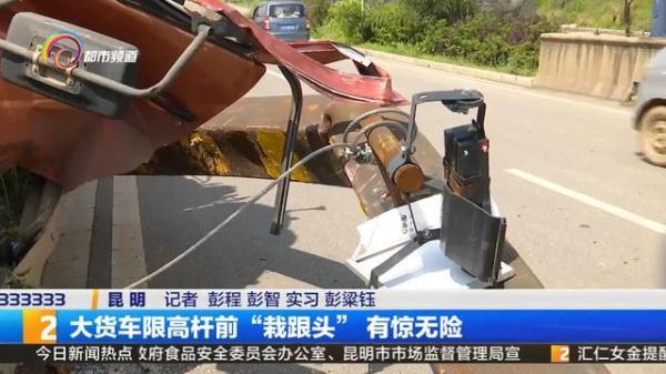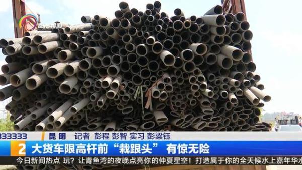 杨师傅车上拉载的是塑料管,早上六点从弥勒出发,要把车上的塑料管拉去大板桥,没想到在限高杆前面栽了个"大跟头", 还好自己没有大碍,也没有对其它车辆造成影响。