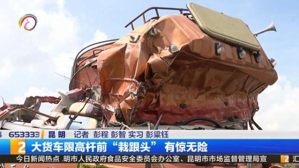 杨师傅说,限高杆限高2.5米,自己的货车高度有3.9米,因为很少走这条路,车子开到面前才发现了眼前的限高杆。回忆起当时撞上限高杆的情景,杨师傅都觉得后怕。