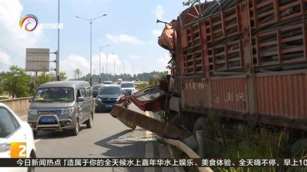 这辆大货车的整个车身冲进了隔离栏内,车头已经严重变形。幸运的是,驾驶这辆大货车的驾驶人杨师傅,并无大碍。