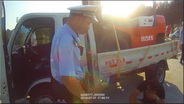 7月31日下午5点33分,民警示意一辆豫L牌号的小车靠边停车接受例行检查。在检查中,民警发现该车存在所载货物超过规定的高度。