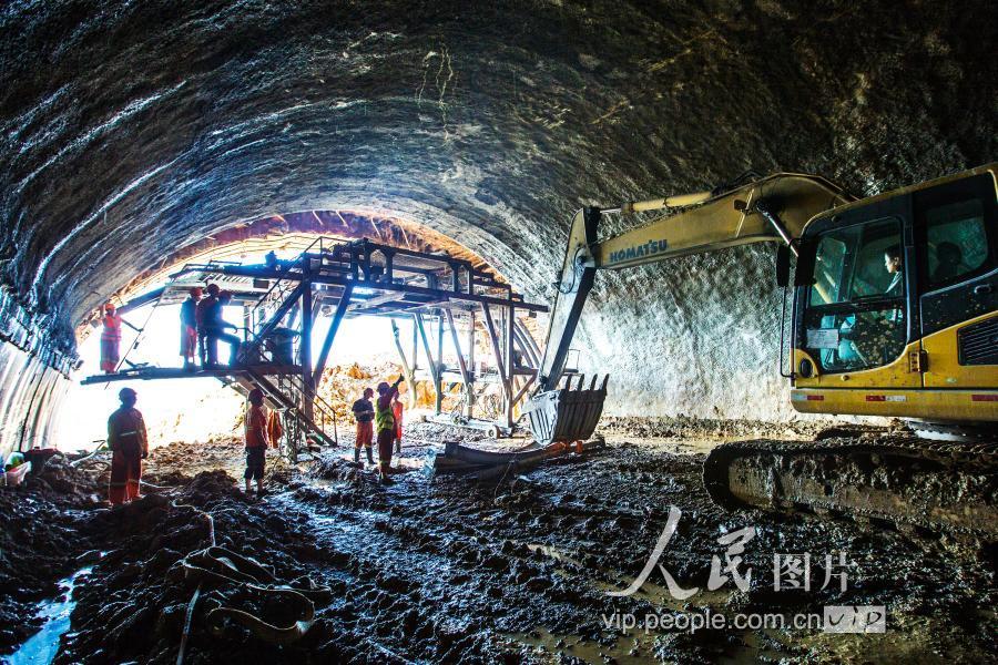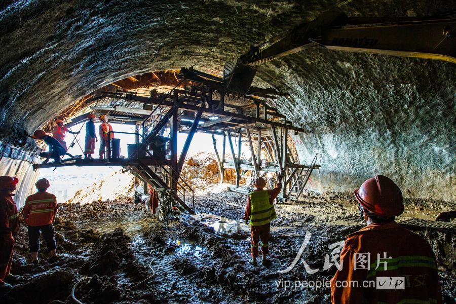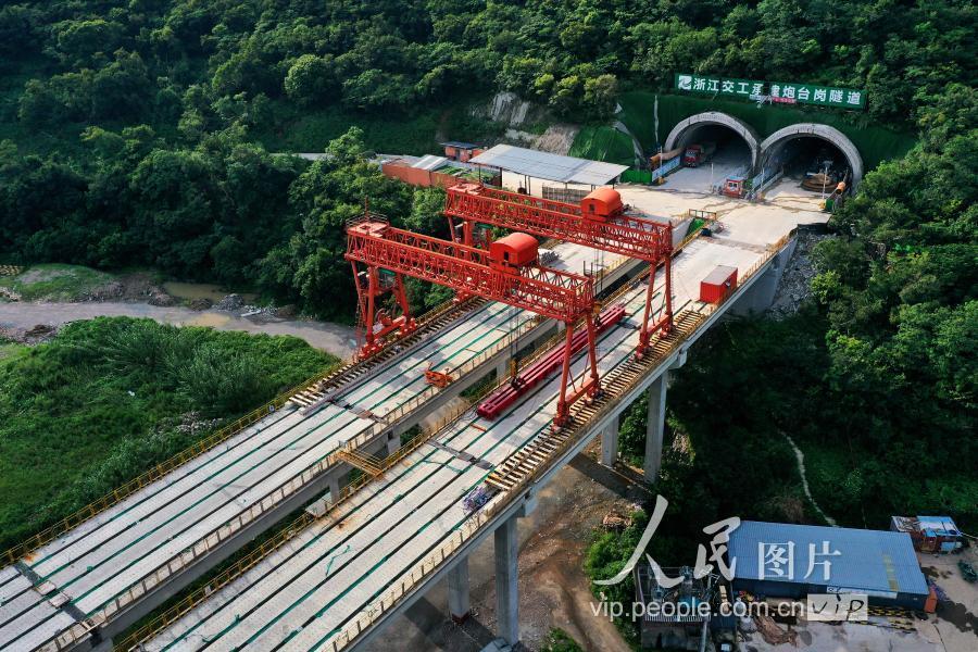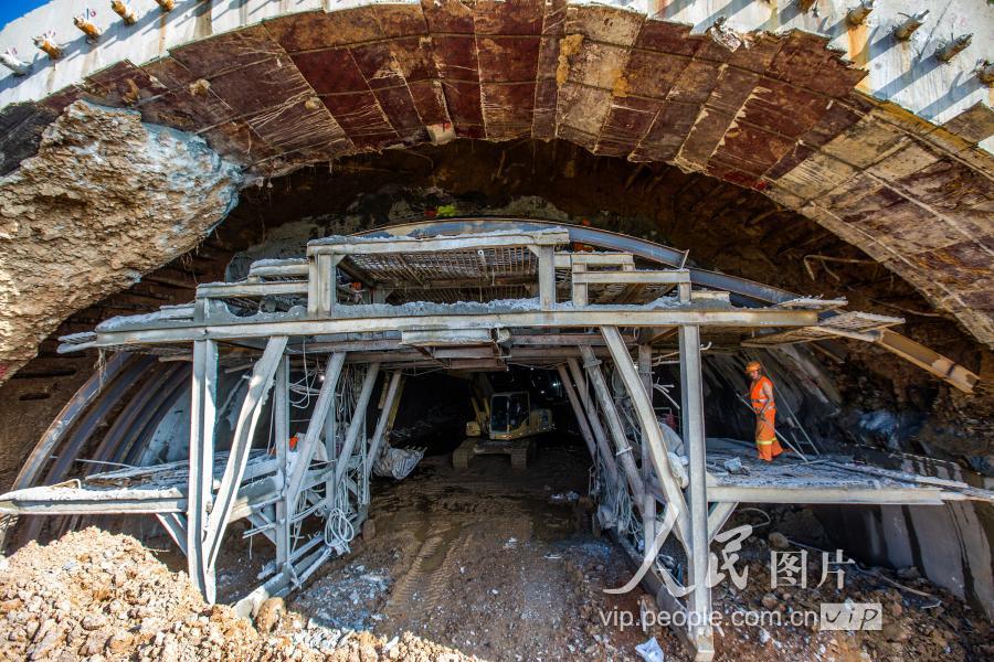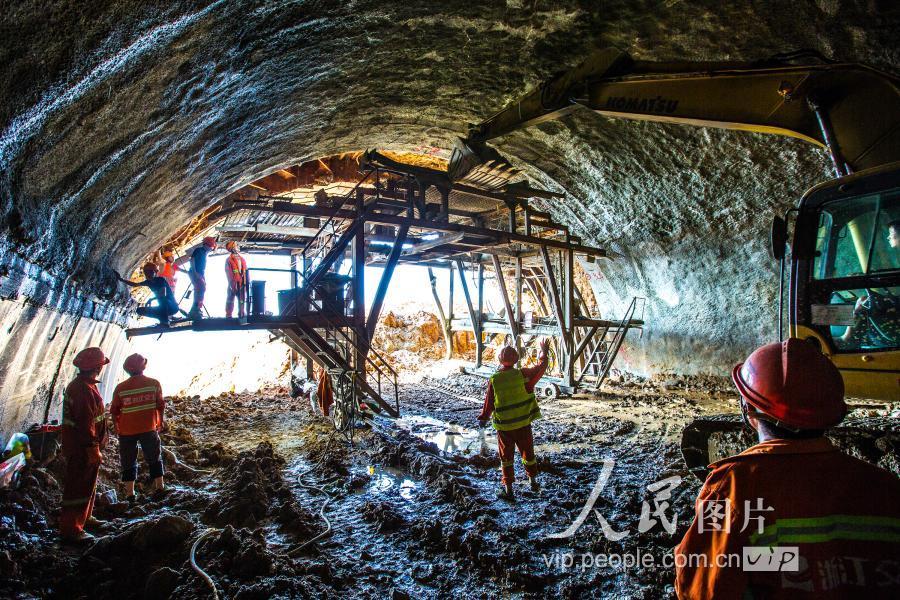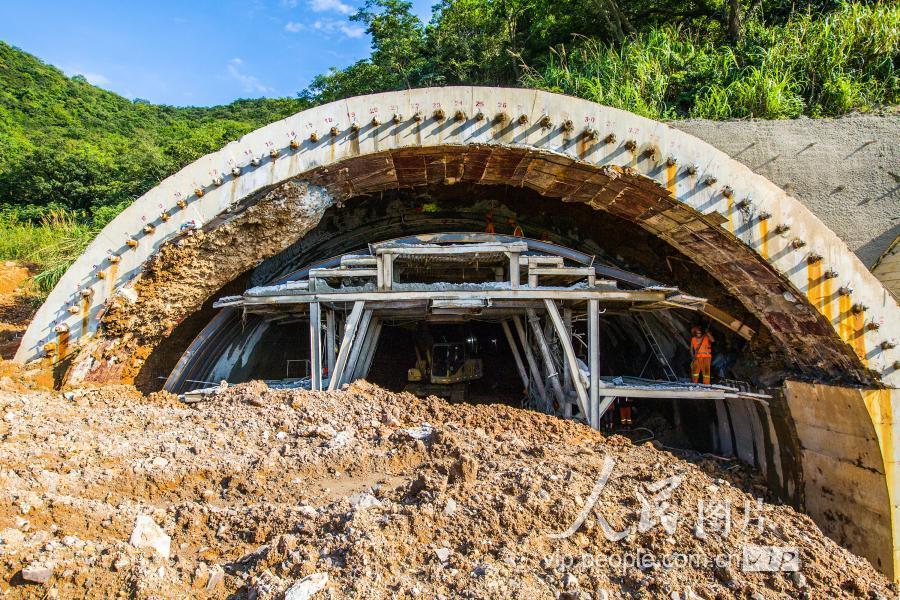 8月11日下午,浙江交通集团宁波舟山港主通道炮台岗隧道右洞施工现场,工人们正在进行洞口支架安装。当天,由浙江交工集团承建施工的舟岱大桥DSSG01合同段炮台岗隧道右线顺利贯通,这标志着项目建设又向前迈进了重要而坚实的一步。