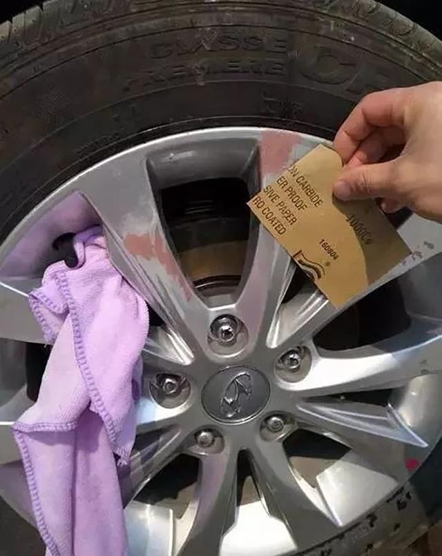 第一步就是要先清洗轮毂,这样有利于我们去检查划痕的情况,如果轮毂伤的比较严重的,那就别费劲了,直接换吧,如果轮毂还能用的话,那么在清洗轮毂之后就用毛巾擦干,等待下一步。