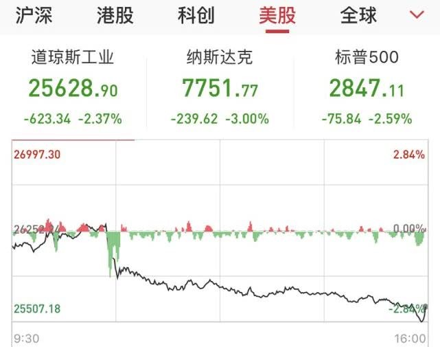 受经贸摩擦恶化影响,美股周五全线低开,板块方面,标普500指数十一大板块全线下跌。其中,能源板块、科技板块和非必需消费品板块领跌。截至收盘,道指大跌逾600点,跌幅2.37%,纳指大跌3%,标普500下跌2.59%。整体来看,美股总体市值一夜跌去9897亿美元,折合人民币约7万亿。而欧洲股市也随之大跌。