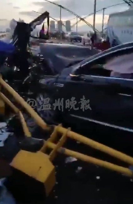 9月5日早上,据看温州客户端用户爆料,瑞安飞云江大桥发生交通事故,有人被撞下桥。网友提供的视频中,桥面一片狼藉,一辆黑色轿车车头损坏严重。刚刚,记者从瑞安市公安局交警大队获悉,今天早上,在飞云江大桥上,一辆私家车与一辆三轮电动车相撞,三轮电动车驾驶员被撞到桥下。目前,事故还在调查中。