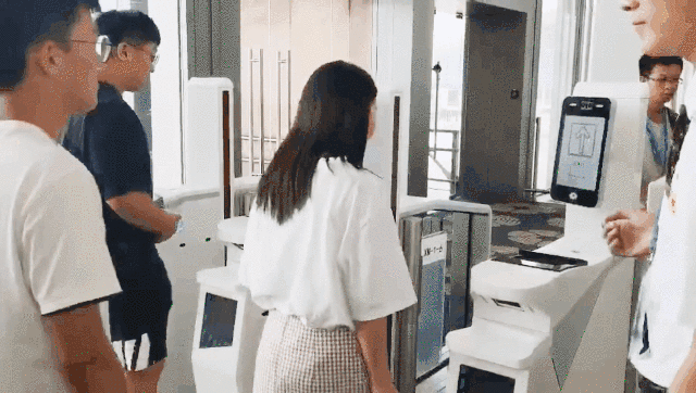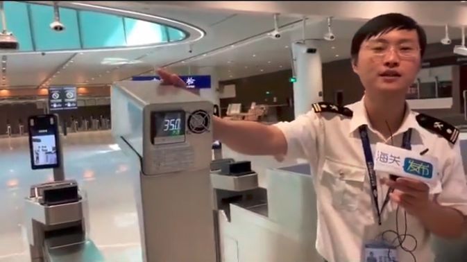 大兴国际机场海关旅检八科王俊侨:“它把红外测温系统、放射性物质定位检测和人员信息采集全部集成到了一台设备上,这样可以最大限度保障旅客“无感通关”。这个通道的总长度是3.5米,旅客通关时间大概是3到4秒。”