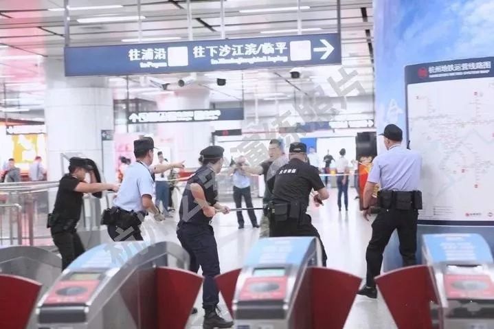 地铁民警立即赶到现场,同时报告指挥中心,并通知地铁工作人员按处置预案分工开展工作。市公安局特警利箭突击队也接到指挥中心指令,分别搭乘就近地铁和省公安厅警务航空队直升机前往现场支援。