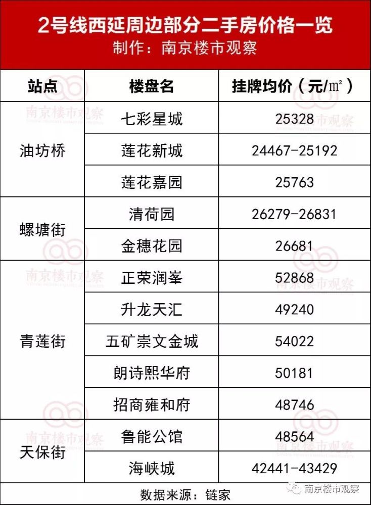 2号线西延周边的二手房价格如下: