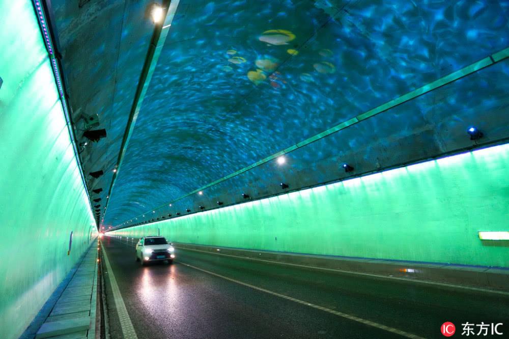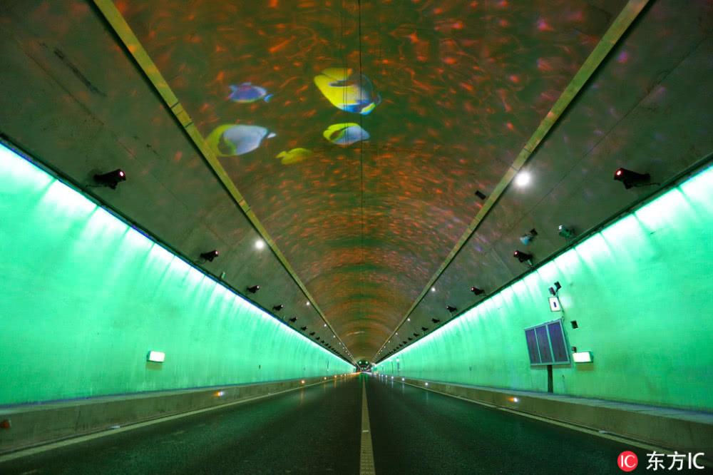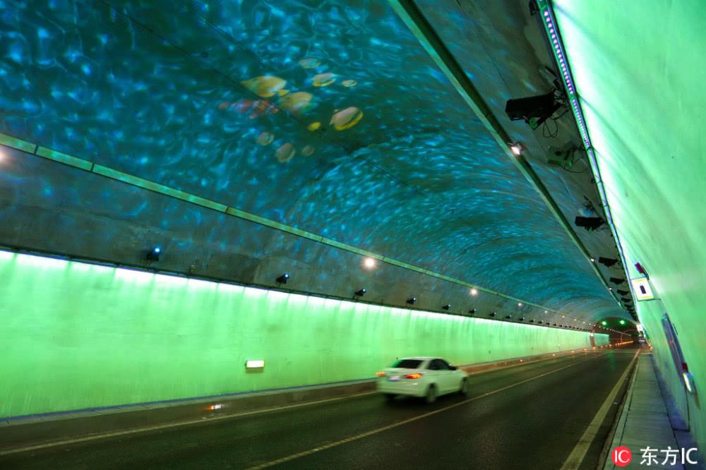 贵州省六威高速公路(六盘水至威宁)黄家屋基隧道全长1978米,正中间位置长约700米采用舒缓照明技术,这是贵州高速公路首次采用该项技术,当车辆行驶至隧道中,隧道顶部会呈现出海水、鲨鱼、贝壳、珊瑚等如梦似幻的“海底世界”,图案会因车辆前进变化为动态场景,车辆仿佛穿行于“海底隧道”,能有效缓解司机长途驾驶的疲劳感。