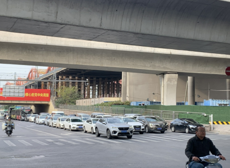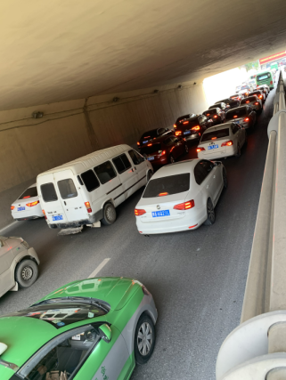 上午9时,在北三环沙口路西向东方向,车辆也有明显排队情况,京广铁路桥隧道里排队车辆车辆达到500米,出租车司机陈师傅告诉记者,今天通行此路口时间比平时慢了一倍。