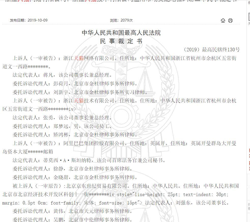 对于阿里巴巴“二选一”,京东曾于2015年起诉,目前该案件仍未完结。