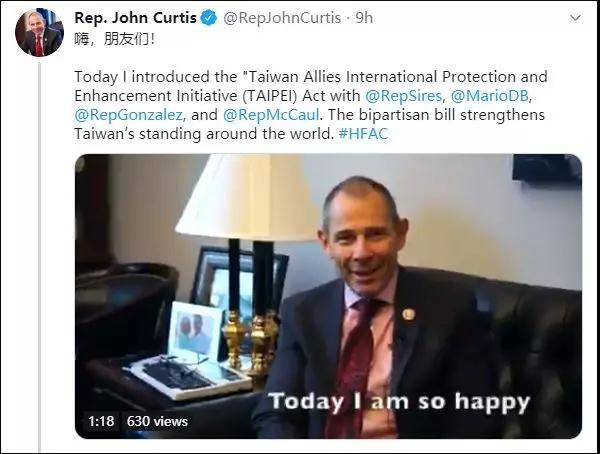 10月18日,众议院版本的“台北法案”才由共和党籍众议员柯蒂斯带头提出。也就不到两周后,众议院外委会就将对其进行表决。据柯蒂斯说,众院版本的“台北法案”也是为了提升台湾的国际地位。