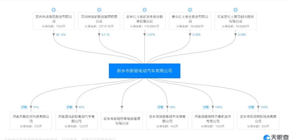 新能电动车的大股东仍旧是公司实际控制人张辉100%占股的苏州天成投资有限公司。在本次投资人变更完成后,公司的注册资本也从原先的7000万变为7596万。