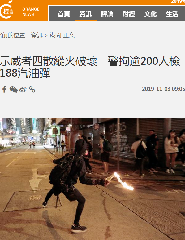 此外,声明还透露,香港警察有组织罪案及三合会调查科(俗称“O记”)2日在铜锣湾拘捕涉嫌藏有攻击性武器的4男1女,并检获约188支汽油弹、数支伸缩警棍及胡椒喷剂等武器。