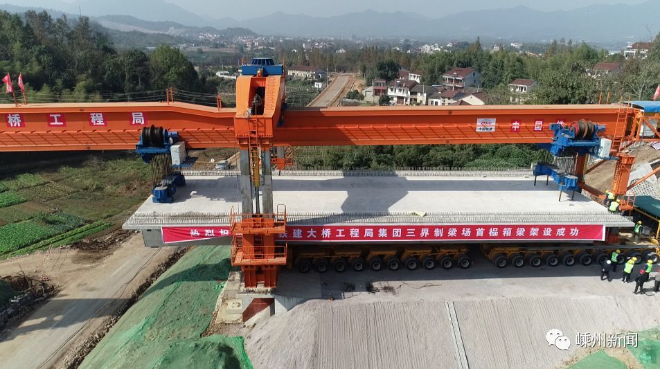 杭绍台铁路绍兴段首榀箱梁架设成功