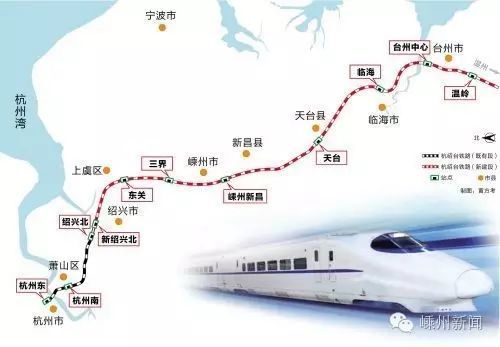 杭绍台铁路是国家首批PPP示范项目之一,铁路从杭州东站出发,全程共9个站点,全长269公里,其中新建正线北接杭甬高铁,从绍兴北站引出,共224公里,线路速度目标值350km/h,项目总投资约448.9亿元。建成后将填补绍兴境内嵊州新昌两地高铁空白,嵊新两地到省会杭州仅需半个小时左右,极大拉近了彼此间的时空距离。